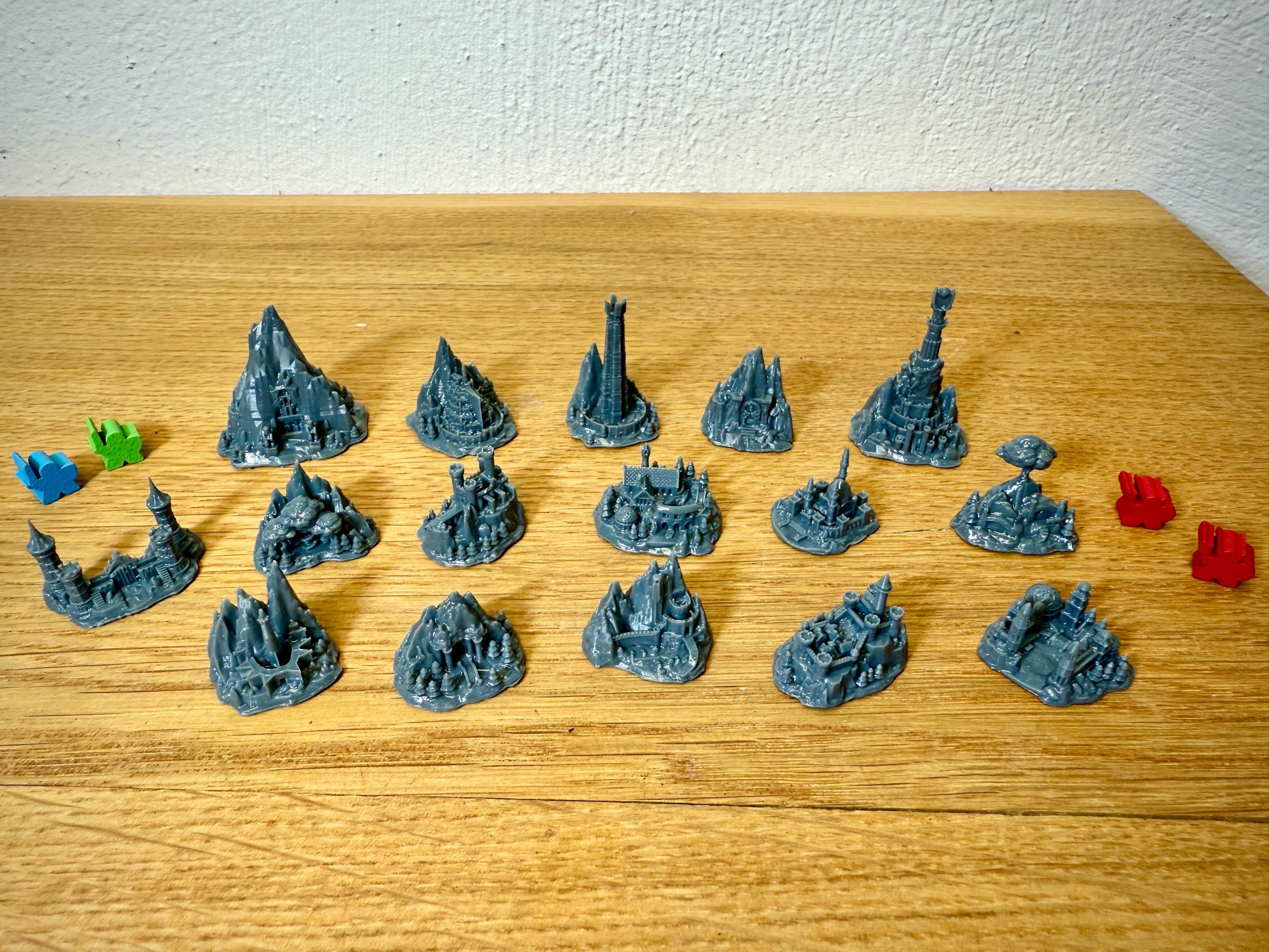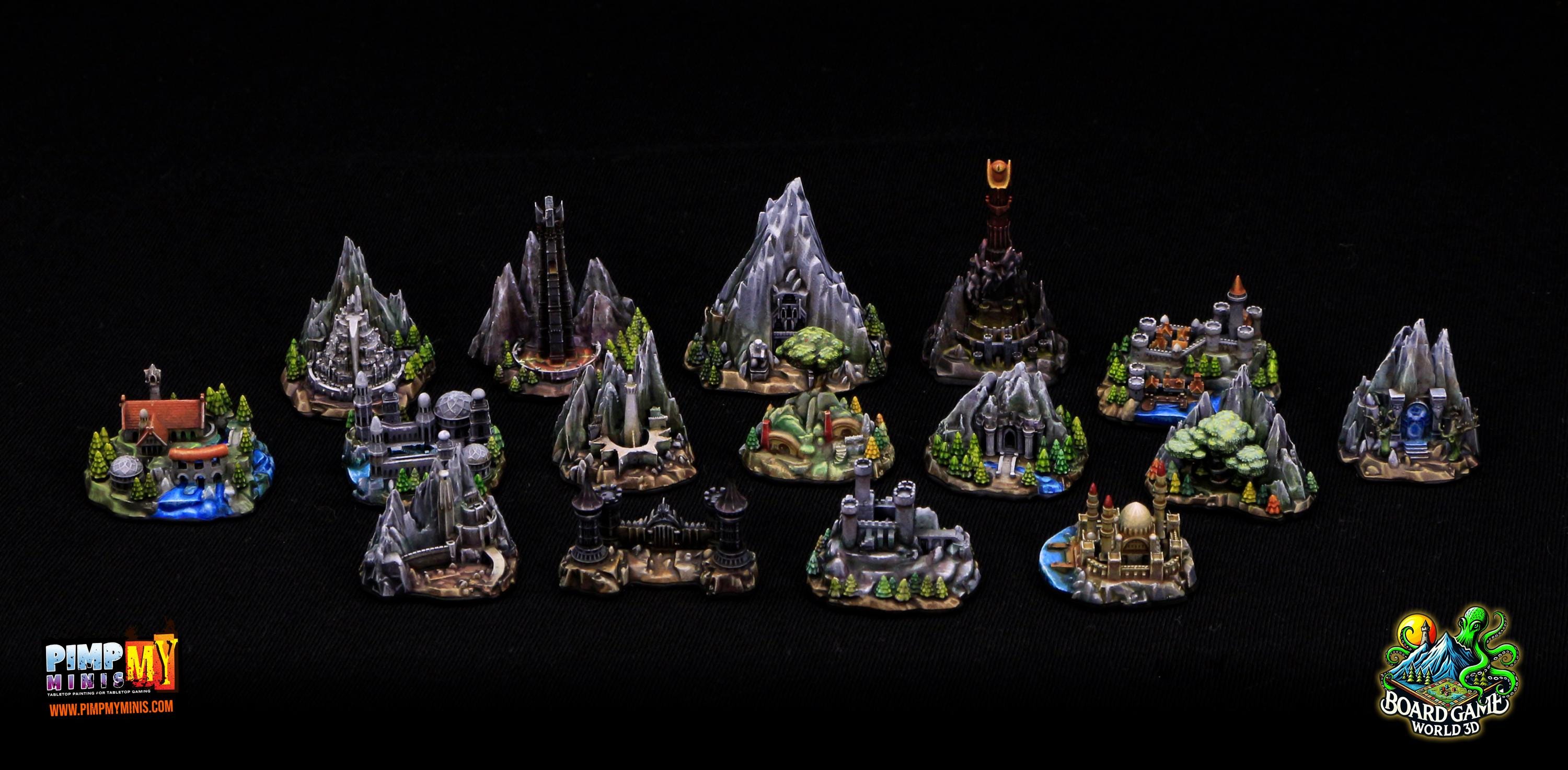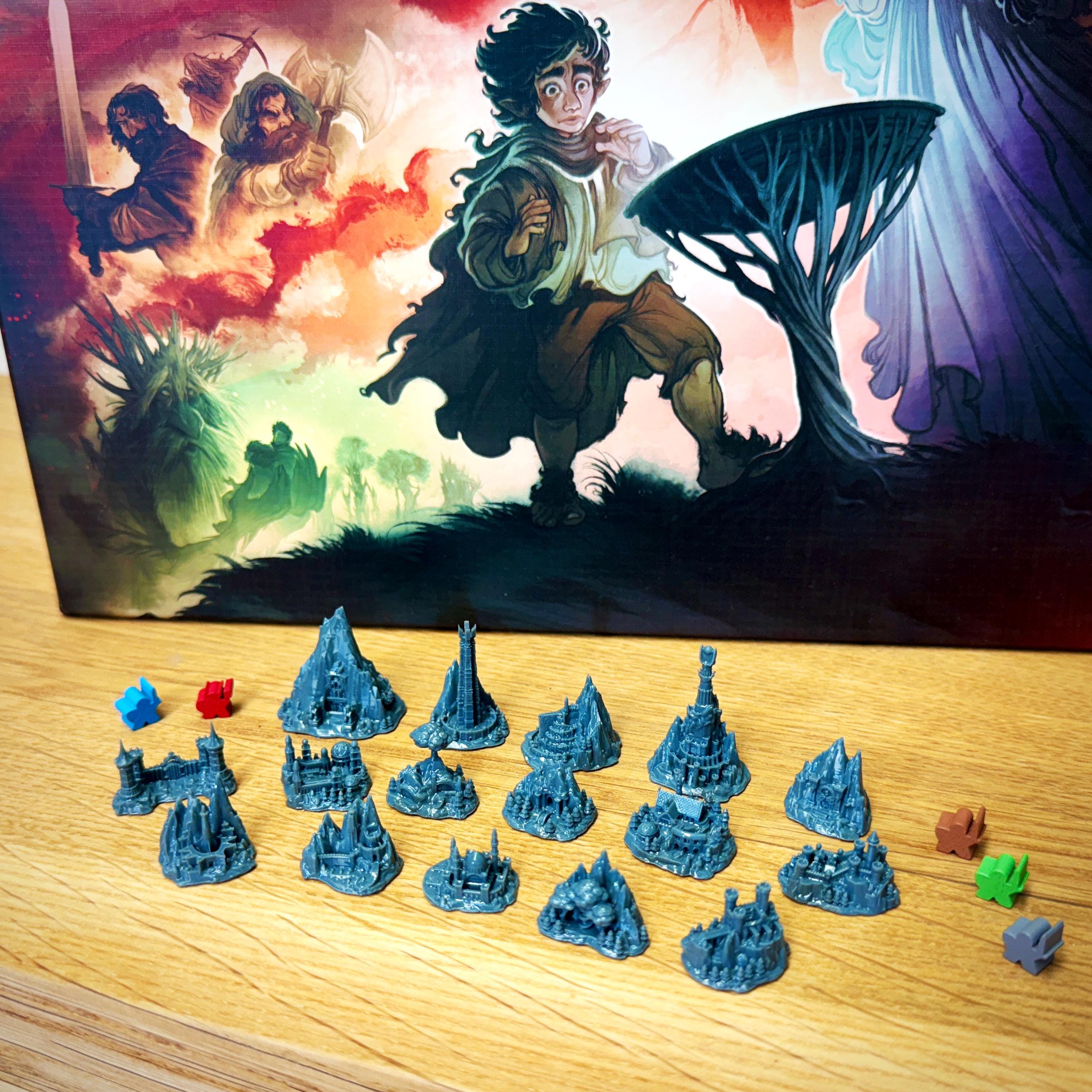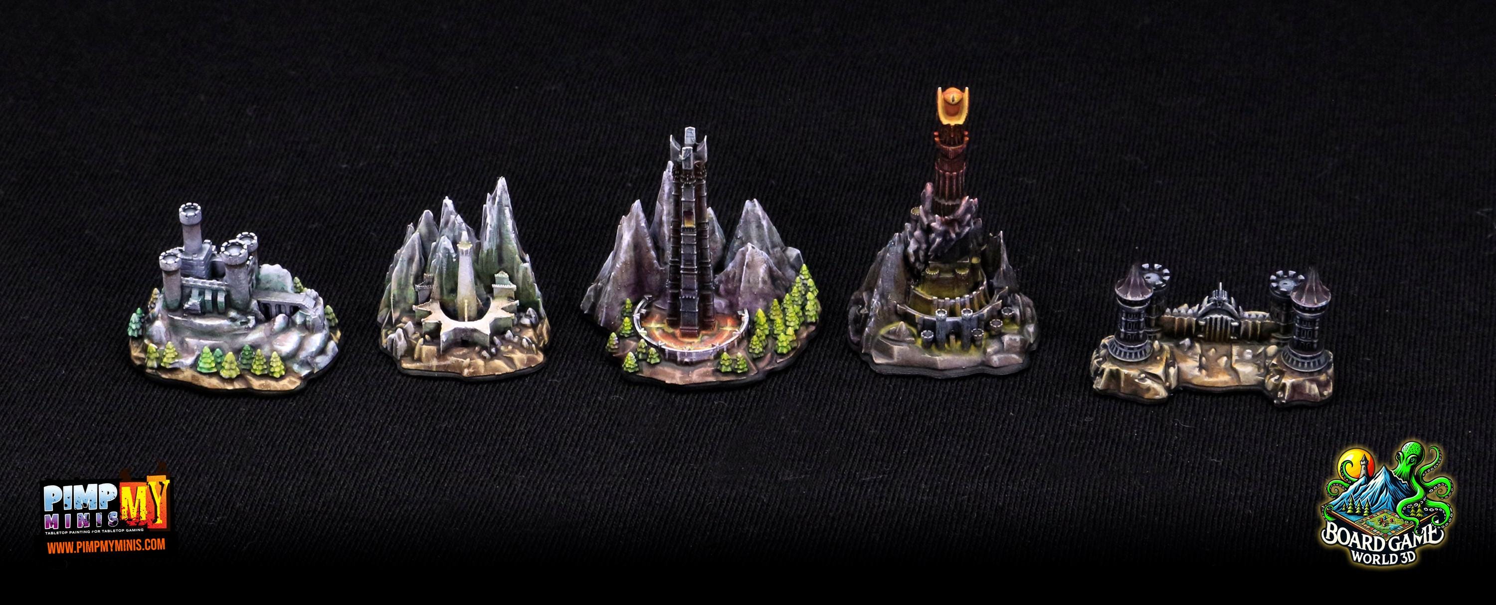 Fully set with 16 unpainted strongholds compatible with the Fate of the Fellowship board game.