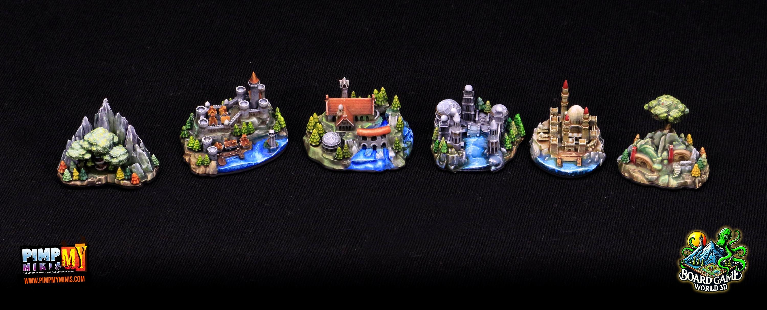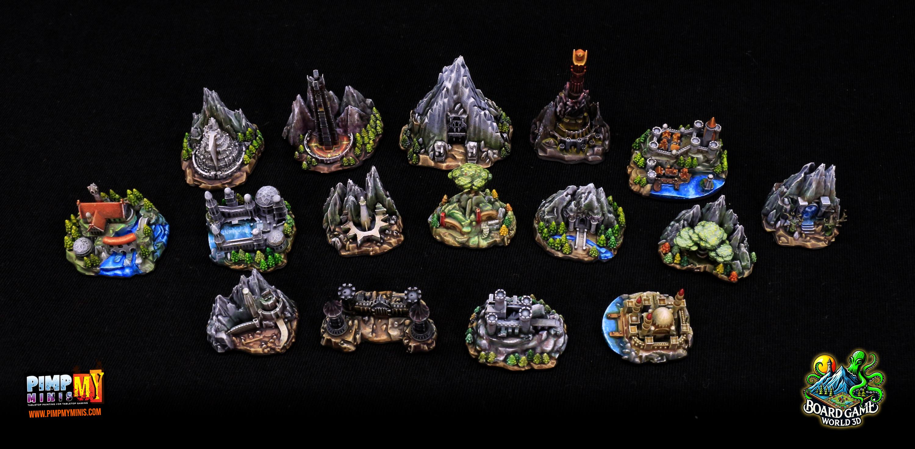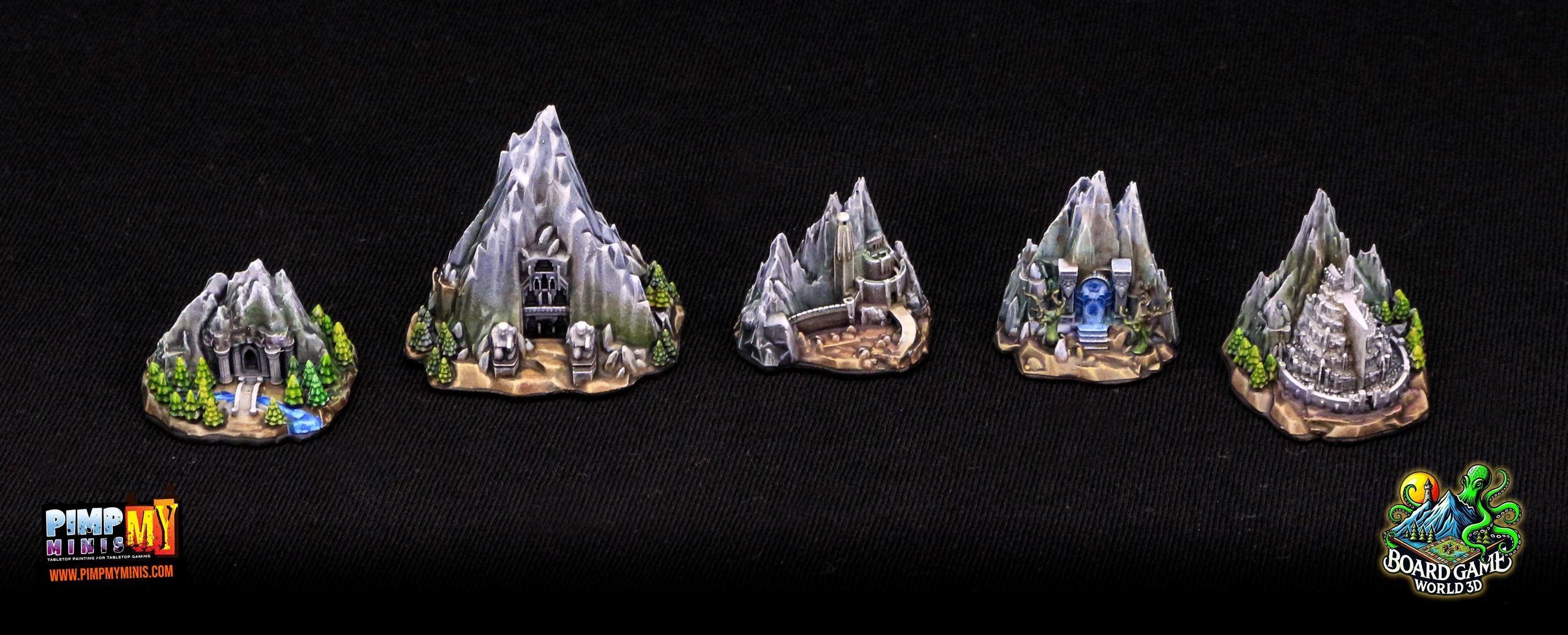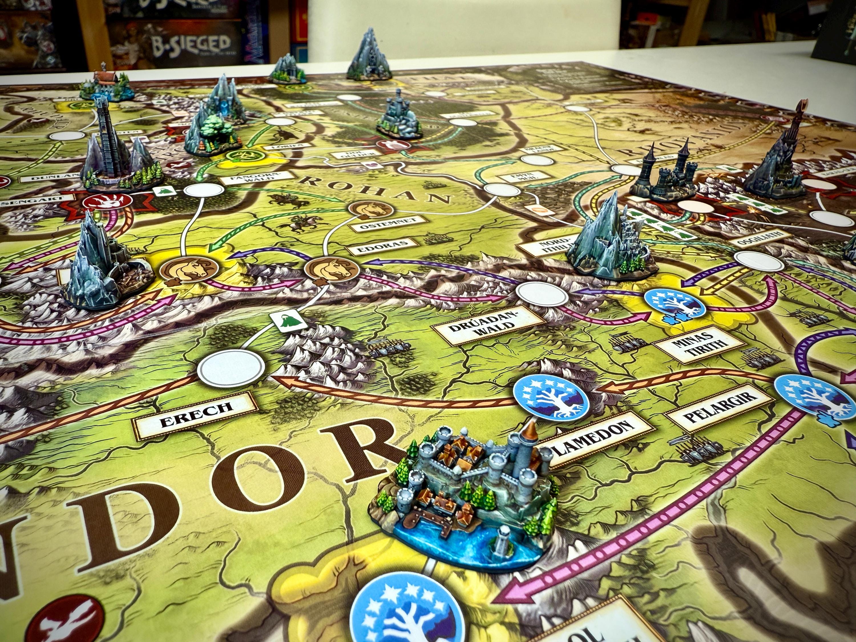 Fully set with 16 unpainted strongholds compatible with the Fate of the Fellowship board game.